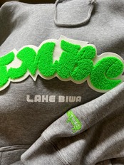 フロントにサガラ刺繍のビッグワッペン